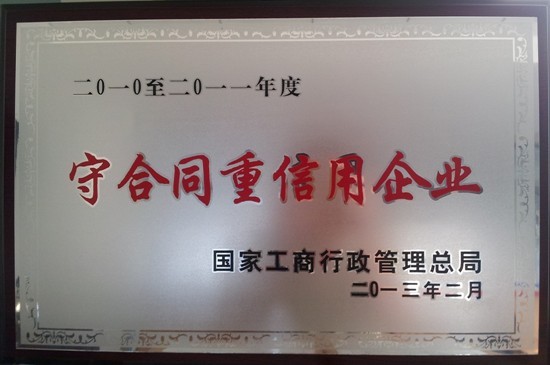 繼2007-2008年度、2009-2010年度連續兩屆“省級守合同重信用”榮譽后,在2010-2011年度“守合同重信用”申報評選中,我公司有幸獲得合肥市工商行政管理局和安徽省工商行政管理局的一致認可,推選申報“國...