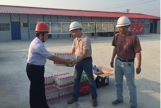 目前,已經進入高溫施工期,為做好各施工現場安全生產、防暑、降溫工作,有效遏制夏季各類安全生產事故和高溫中暑事件發生,保障一線施工作業人員的安全、健康、清涼。公司以高度的責任感和緊迫感,由企業法人帶隊,深入施工現場,開展 “安全、健康、清涼”慰問活動,為一線施工作業人員送去企業的關懷和問候。同時要求各項目部,對一線施工人員的生命和健康抱以高度負責態度,把防暑降溫工作落實到每一個班組、每一個工人;“抓兩頭、歇中間”避免中午高溫期間進行室外施工作業;確保施工人員宿舍、食堂、廁所、淋浴間等臨時設施滿足防暑降溫需求;為現場施工人員提供綠豆湯、茶水、常用防暑藥品,并配備相應的急救器材;加強對飲用水、食品、食堂衛生管理,嚴防食物中毒事件;加強防暑降溫工作檢查,注重防火,排除隱患,確保安全生產。