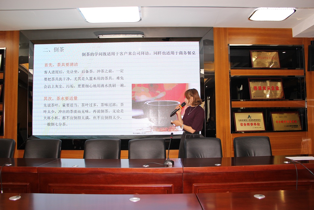 2017年10月28日下午2:30,集團公司組織了首次文化禮儀培訓,由集團發展戰略執行中心品牌文化部何傳鳳同志擔任講師,分別從商務禮儀、溝通技巧、文化建設三個方面,跟大家做了充分的講解。