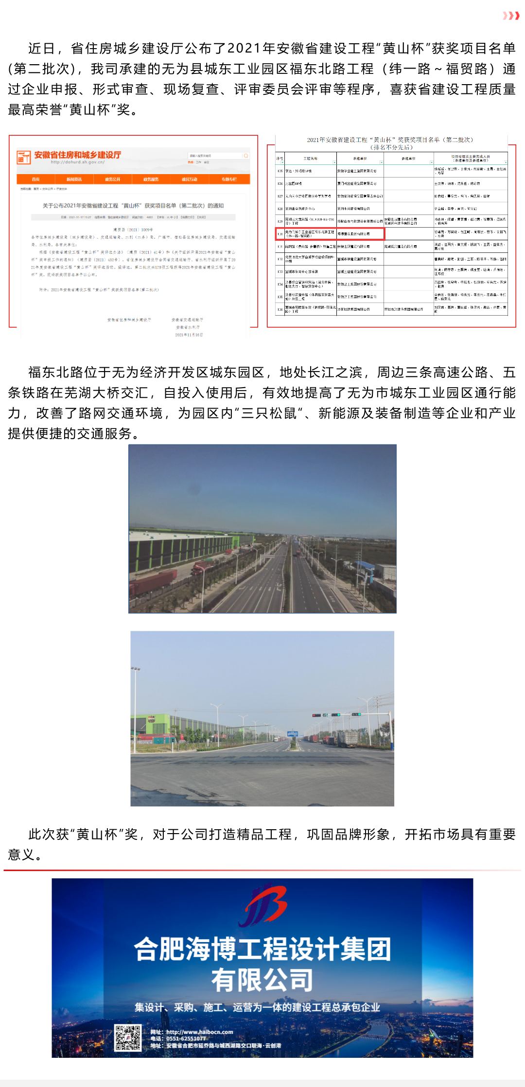 賀我司榮獲安徽省建設(shè)工程“黃山杯”獎(jiǎng)