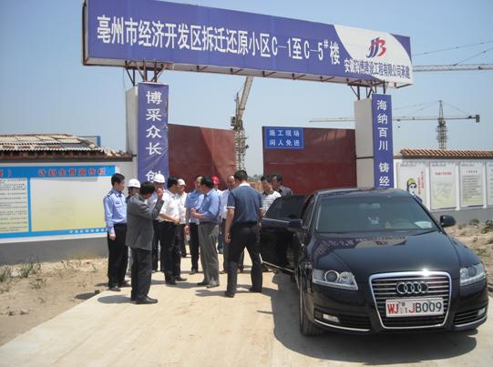 5月6日上午,亳州市副市長(zhǎng)兼公安局長(zhǎng)祁述志在市政府及經(jīng)開區(qū)相關(guān)人員的陪同下,視察了我公司承建的亳州市經(jīng)濟(jì)技術(shù)開發(fā)區(qū)拆遷還原安置小區(qū)C1~C5#樓工程。祁市長(zhǎng)實(shí)地查看了施工現(xiàn)場(chǎng)情況,分別聽取了建設(shè)、監(jiān)理及施工單位對(duì)該項(xiàng)目的詳細(xì)介紹。祁市長(zhǎng)對(duì)該工程的施工給予了充分肯定,并要求公司繼續(xù)加強(qiáng)施工力量,鼓足干勁,加快施工進(jìn)度,爭(zhēng)取拆遷居民能早日搬進(jìn)新家。